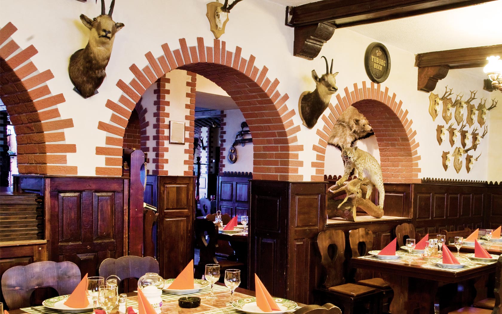 In meniul restaurantului la loc de cinste stau preparatele originale create la Cabana Vanatorilor, unde familia Bercea va invita sa savurati bucatele vanatoresti realizate cu multa grija si pricepere de un colectiv de profesionisti in bucatarie.